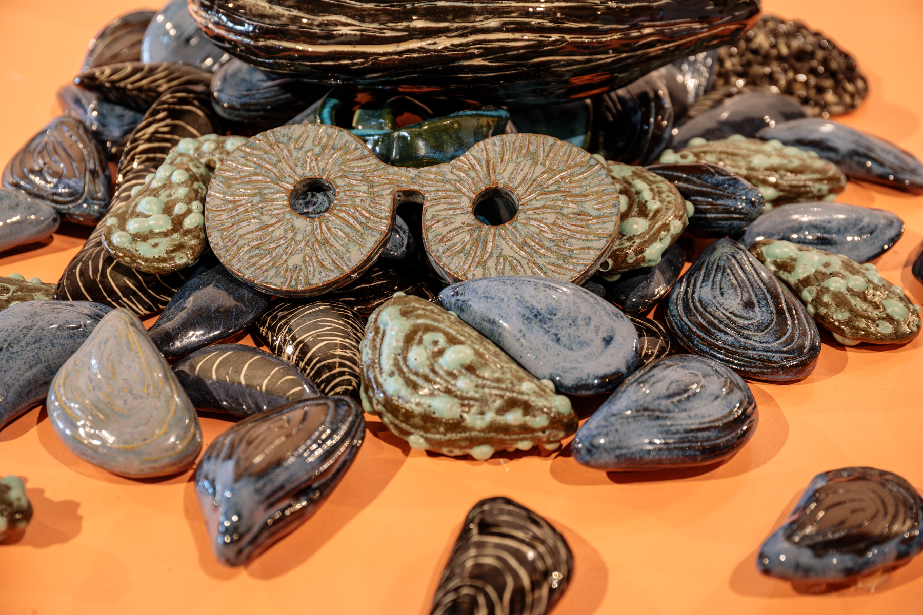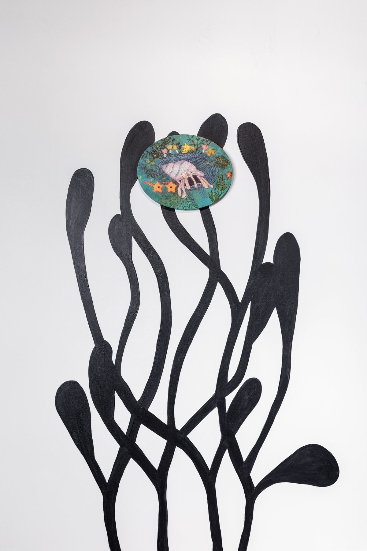 Au centre de ce corpus, la sirène occupe une place fondamentale. Je la revisite à travers une lecture féministe, comme une figure de puissance, de métamorphose et de résistance. Des sirènes antiques aux légendes scandinaves, en passant par Sedna dans l’Arctique, elles portent des histoires de transformation, d’altérité et de survie. En les réactivant, je cherche à réenchanter notre rapport au vivant, à évoquer le soin — de soi, des autres et des milieux — et à inviter le public à découvrir une forme de douceur active. Mes œuvres deviennent des espaces où se mêlent mémoire, féminité indomptée et imagination, pour ouvrir un passage vers d’autres façons d’habiter le monde.